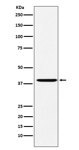 Western blot(SDS PAGE) analysis of extracts from HeLa cell lysate.Using CAPG Rabbit mAb [Z29t]at dilution of 1:1000 incubated at 4℃ over night.