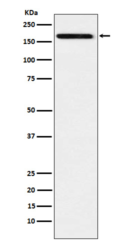 Western blot(SDS PAGE) analysis of extracts from Raji cell lysate.Using IL17A Receptor Rabbit mAb [V22R]at dilution of 1:1000 incubated at 4℃ over night.