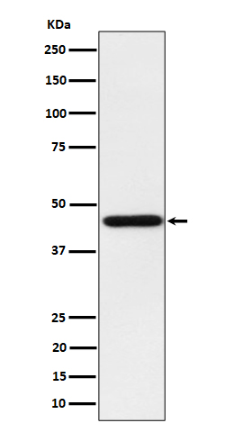 Western blot(SDS PAGE) analysis of extracts from HepG2 cell lysate.Using Homer1 Rabbit mAb [IZS8]at dilution of 1:1000 incubated at 4℃ over night.