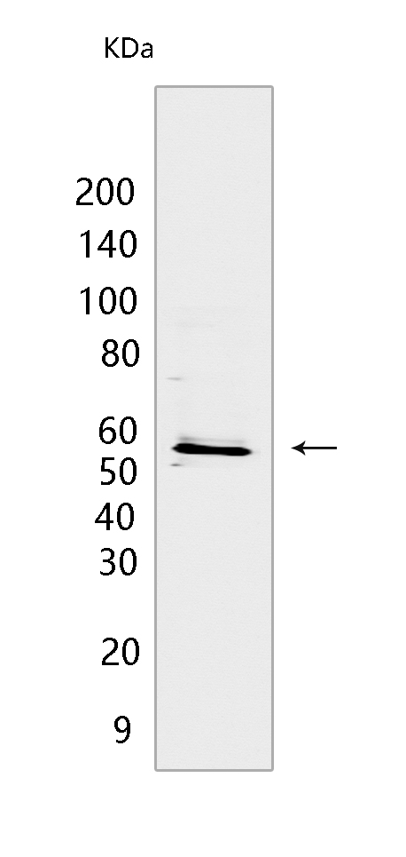Western blot(SDS PAGE) analysis of extracts from human brain.Using TPH2Rabbit mAb [60S6] at dilution of 1:1000 incubated at 4℃ over night.