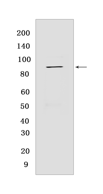 Western blot(SDS PAGE) analysis of extracts from HL60 cells .Using MMP9Rabbit mAb [M7WT] at dilution of 1:1000 incubated at 4℃ over night.