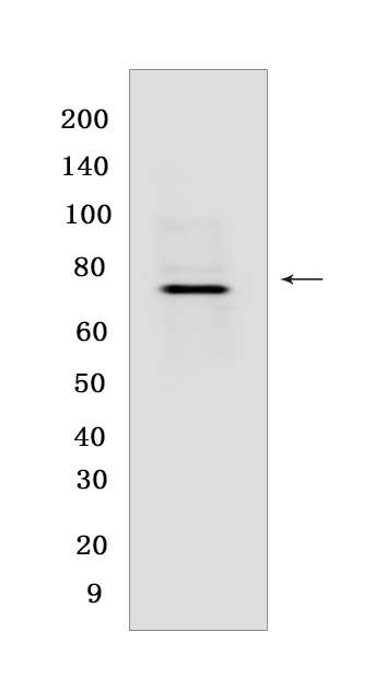 Western blot(SDS PAGE) analysis of extracts from Jurkat cells.Using TNF Receptor IIRabbit mAb [5523] at dilution of 1:1000 incubated at 4℃ over night.