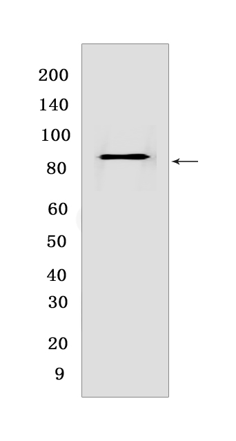 Western blot(SDS PAGE) analysis of extracts from HeLa cells.Using STAT5B Rabbit mAb [OC0Q] at dilution of 1:1000 incubated at 4℃ over night.