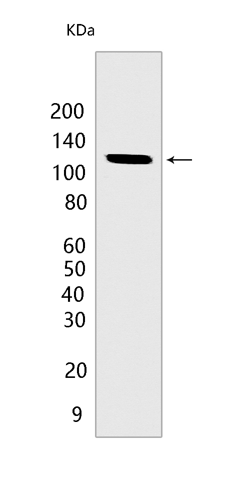 Western blot(SDS PAGE) analysis of extracts from A549 cells.Using VPS18 Mouse mAb IgG [325Z] at dilution of 1:1000 incubated at 4℃ over night.